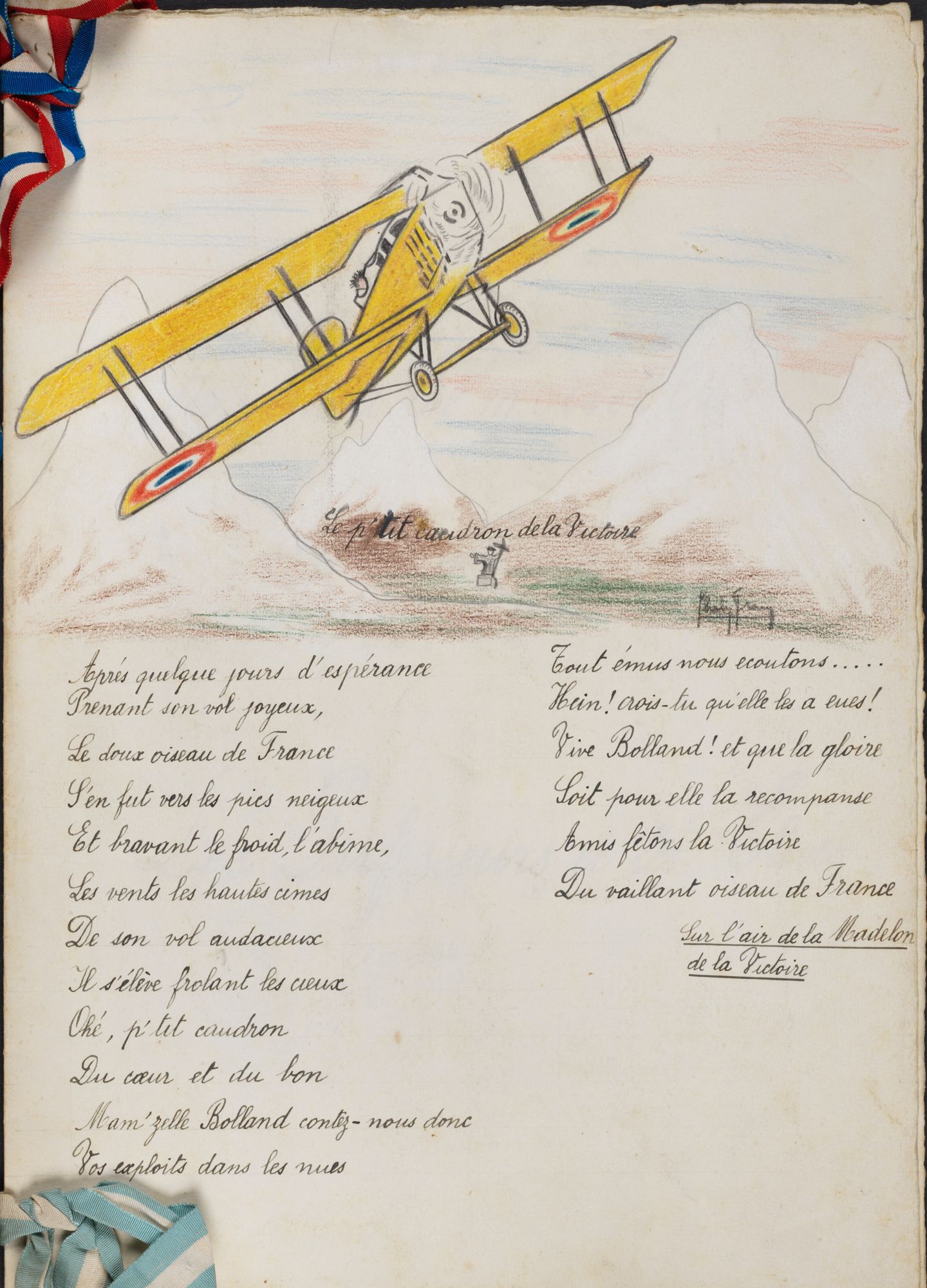 1 Le patronyme d’Adrienne Bolland prend deux « L » tandis que celui de son père n’en prend qu’un. Il s'agit possiblement d'une erreur d'état civil. Vous pouvez voir sur l'acte de mariage d'Henri Boland avec Marie Pasques que la signature de l'époux contient un "L" tandis que le nom sur l'acte en comporte deux. En ce qui concerne Adrienne, il se dit également qu’il fallait deux « L » pour voler en avion. C’est en tout cas un jeu de mot qui était et est toujours utilisé pour justifier cette erreur orthographique !