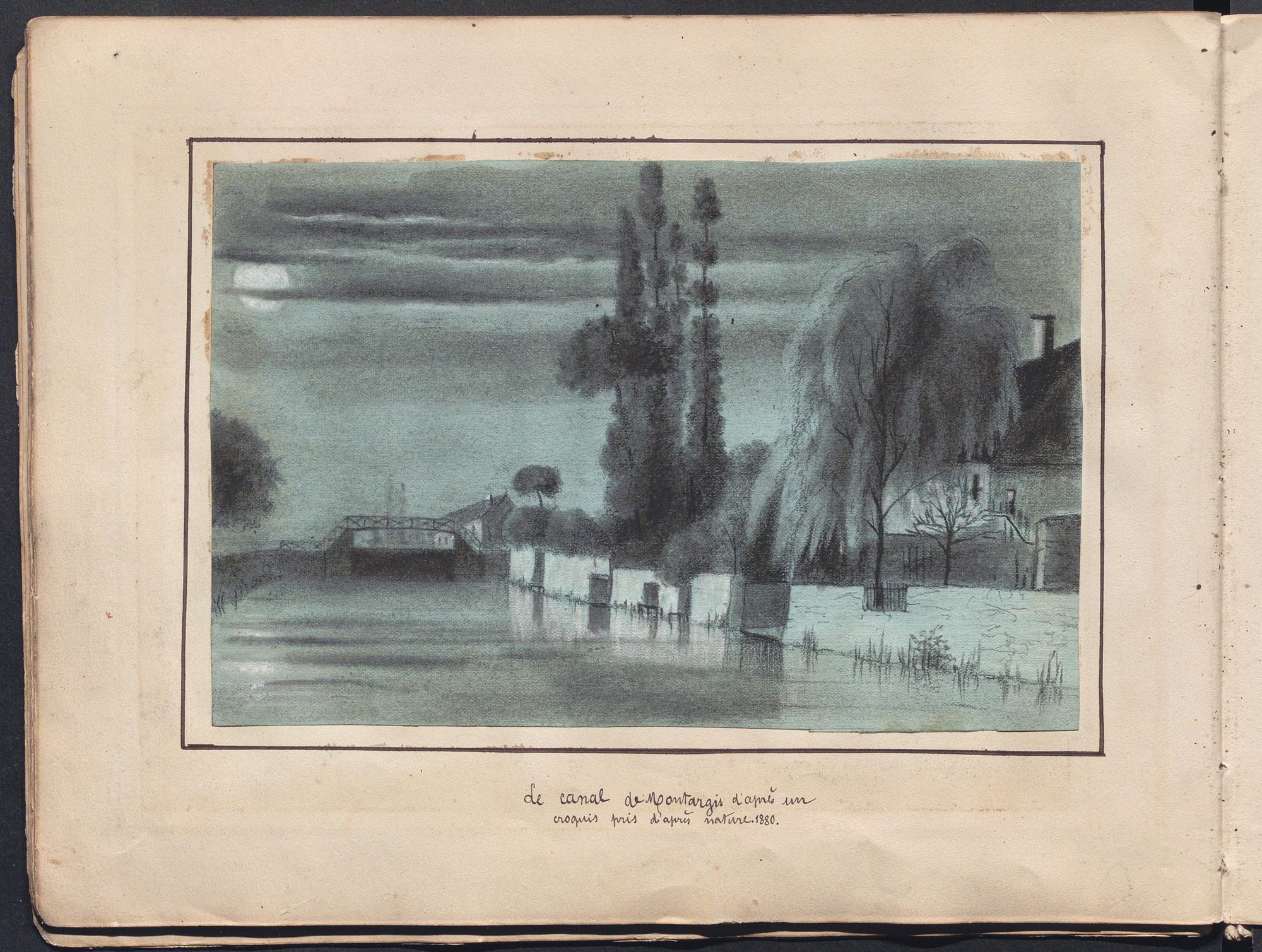 L’album référencé 15 Fi 31 rassemble les dessins de Léon Paul Gaston Prudhomme entre 1874 et 1881. Né le 24 mars 1862 à Montargis, cet album ressemble à un hommage posthume de ses parents. Son père, Léon Joseph, est dessinateur au chemin de fer du Bourbonnais. Il hérite très certainement de son don et l’exerce au fil de ses journées et de ses voyages. Il croque ainsi Montargis, la campagne Gâtinaise mais aussi le Jura. Il s’exerce aussi de manière plus académique à partir des œuvres de Gustave Doré. Il décède à Montargis, avenue de la Gare, le 16 juin 1883.