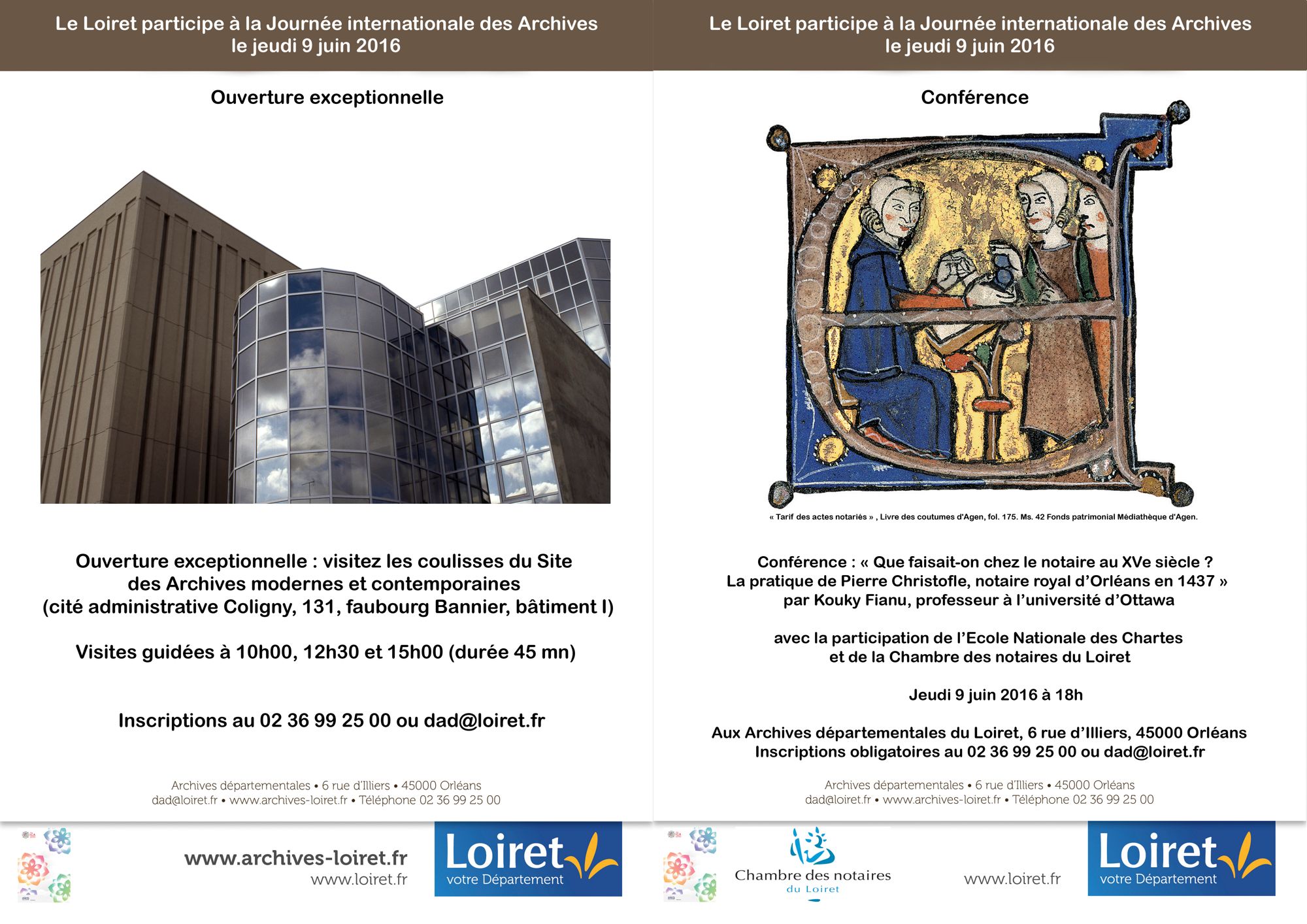 Le Loiret participe à la Journée internationale des Archives le 9 juin! Ouverture exceptionnelle du Site des Archives modernes et contemporaines (Coligny) et conférence de Mme Fianu, professeur à l'Université d'Ottawa.