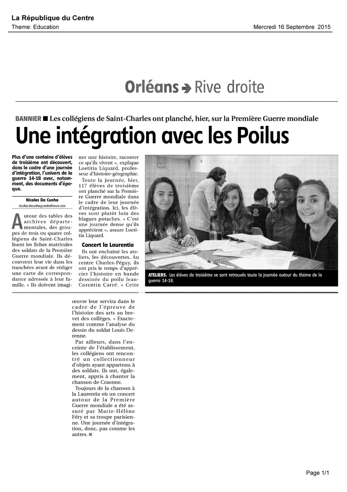 Cours Saint-Charles d'Orléans. Journée d'intégration des élèves de troisièmes, 2014 et 2015