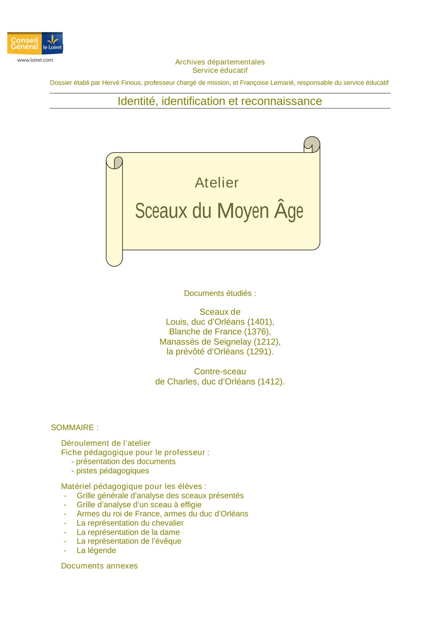 Par l'observation de documents originaux, sceaux, matrices de sceaux, ainsi que d'une collection du XIXe siècle, les élèves appréhendent concrètement ce moyen d'identification propre au Moyen Âge et le type de document qu'il servait à authentifier.