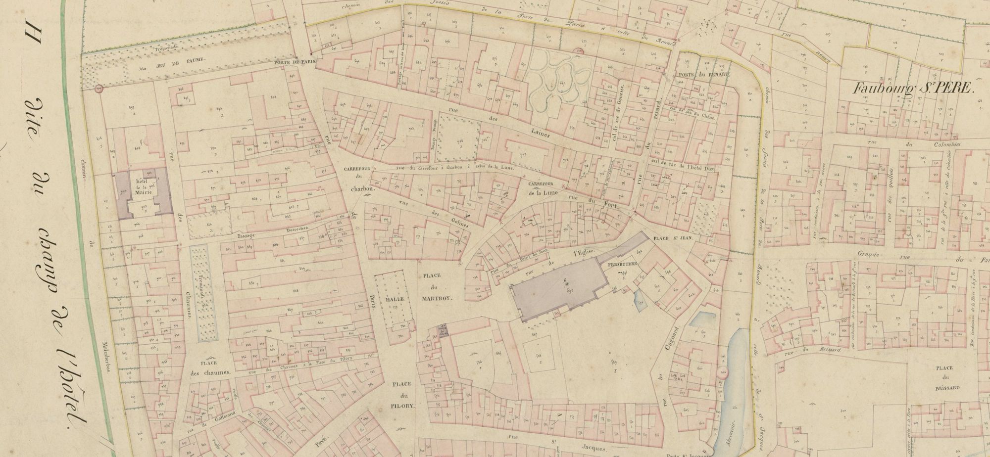 Détail de la section M du plan cadastral de Puiseaux, 1836