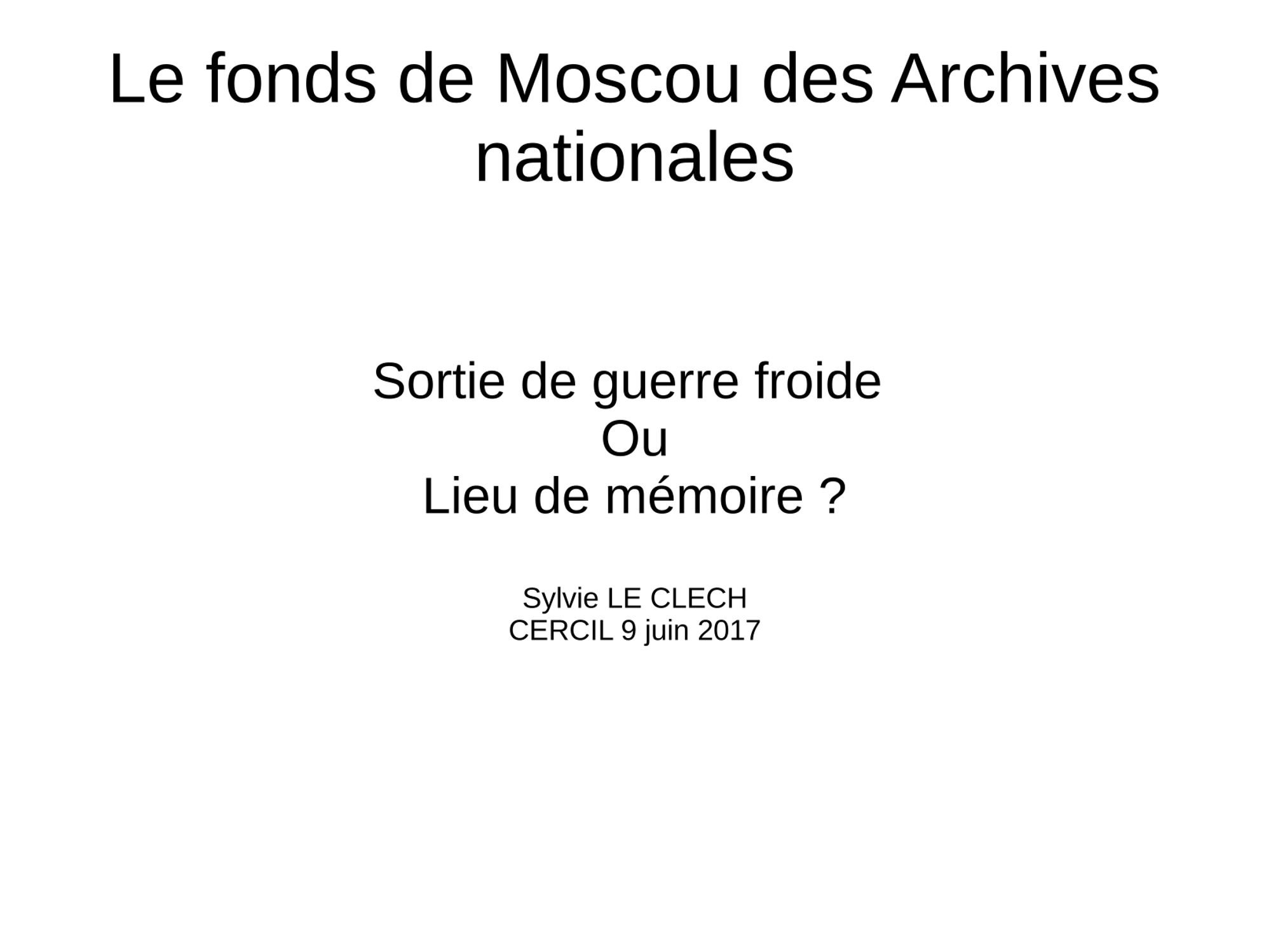 « Le fonds de Moscou des Archives nationales, une fin de guerre froide ou un nouveau lieu de mémoire »