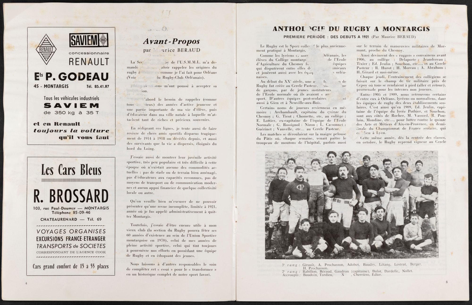 Maurice-Emile Béraud naît le 1er septembre 1889 à Montargis. Avant de devenir instituteur, il fréquente tout naturellement l’école normale d’Orléans de 1906 à 1909. Ses prédispositions sportives sont déjà visibles sur son dossier d’admission : il y est décrit comme ayant une constitution physique « très robuste » et développant « ses muscles par la gymnastique ». C’est donc avec cette école que débute son aventure rugbystique ! En effet, celle-ci compte une section de rugby dont il devient un membre actif !