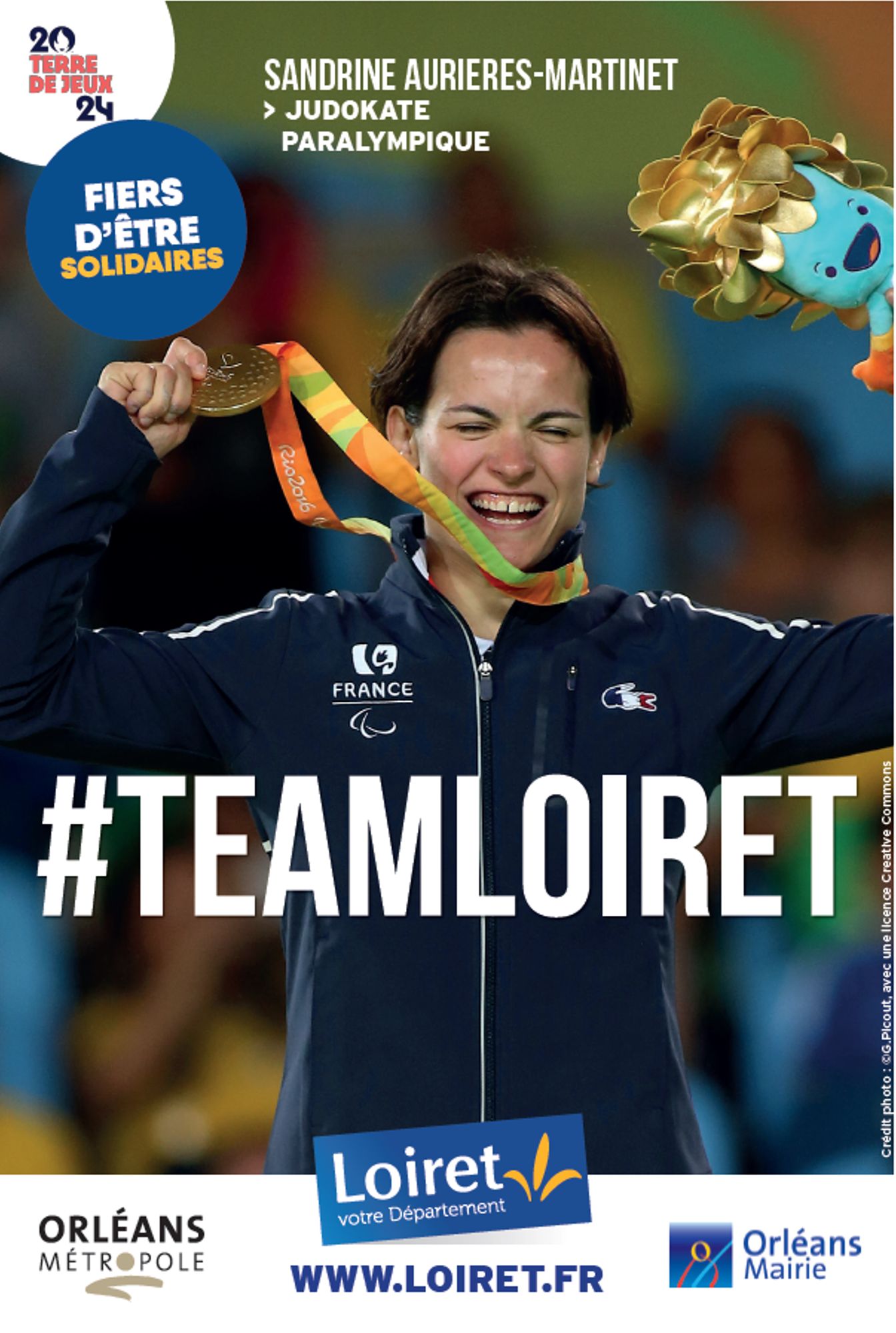 Campagne de communication co-financée par le Département du Loiret pour le soutien des athlètes Loirétains aux Jeux Olympiques de Paris 2024, portrait de la apra judokate Sandrine Aurières-Martinet.