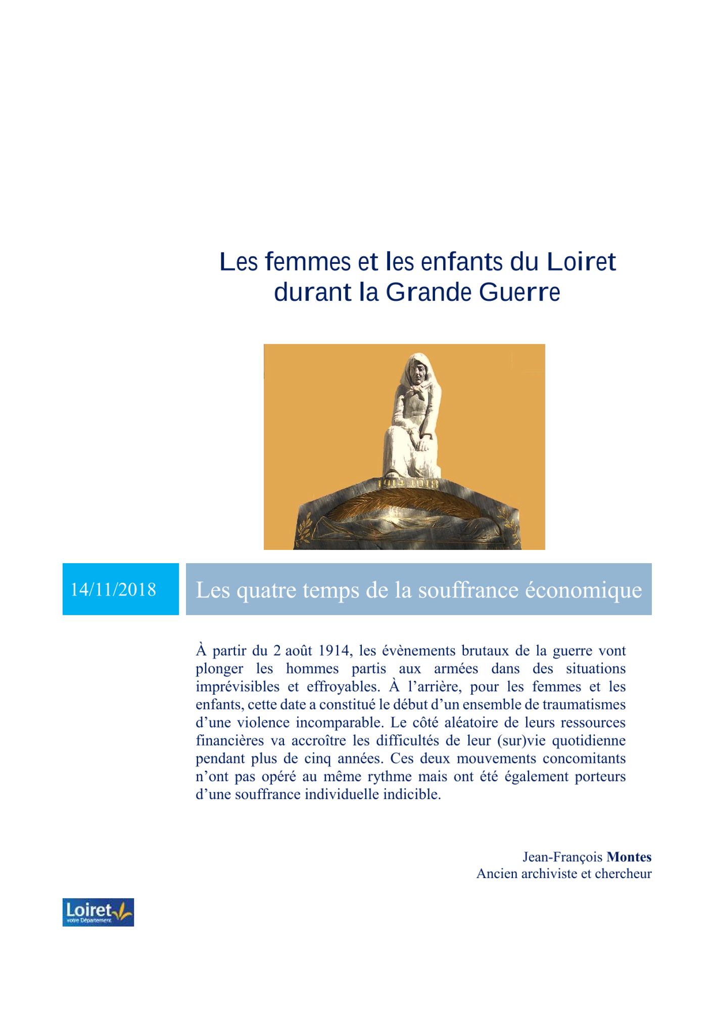 Jean-François Montes, historien, ancien archiviste de la Caisse nationale des Allocations familiales s’est intéressé à un sujet peu étudié, les ressources des familles des soldats mobilisés durant la Première Guerre mondiale.