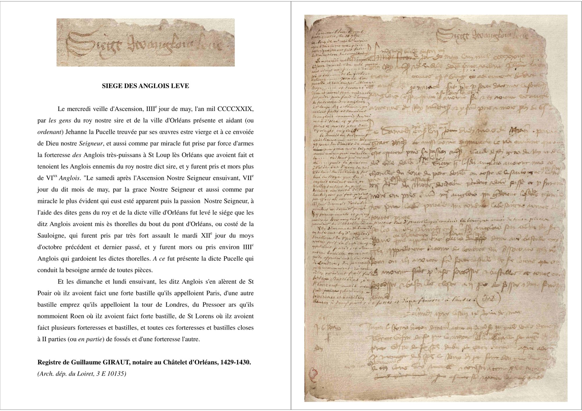 - Découvrez le document d'archive de 1429 racontant la levée du siège d'Orléans :