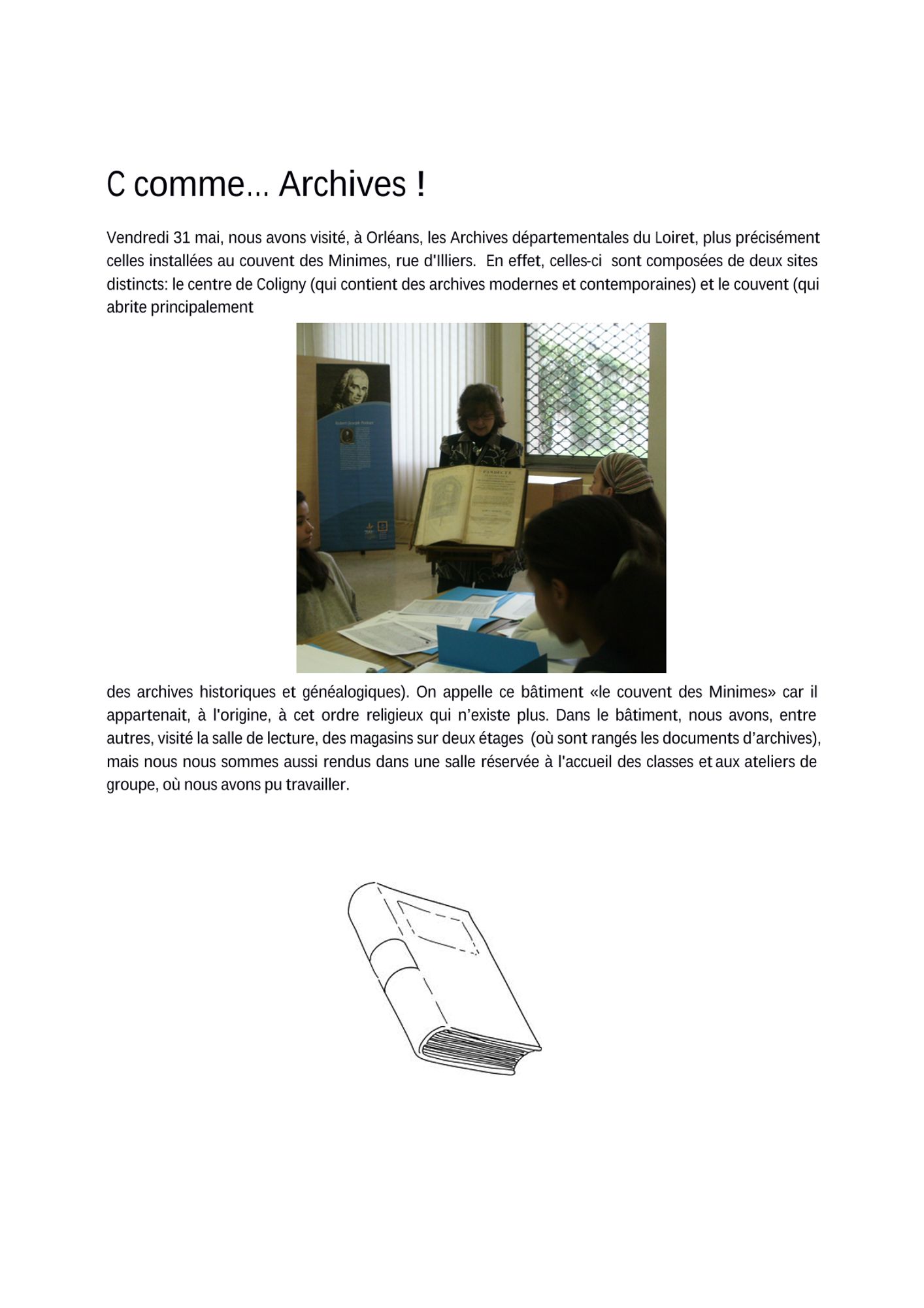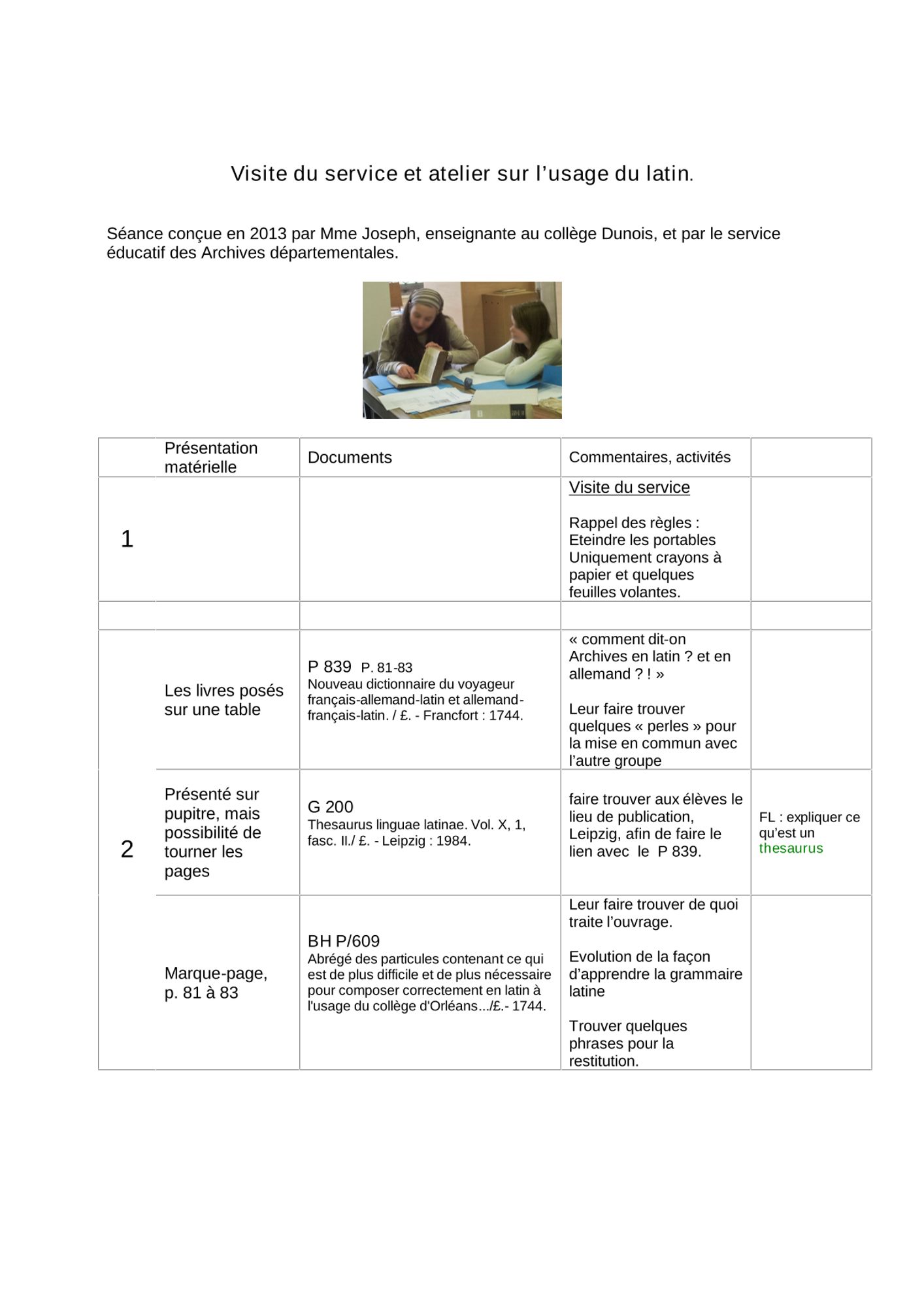 - Visiter le service des archives départementales et consulter des ouvrages en latin (avec quelques exercices).