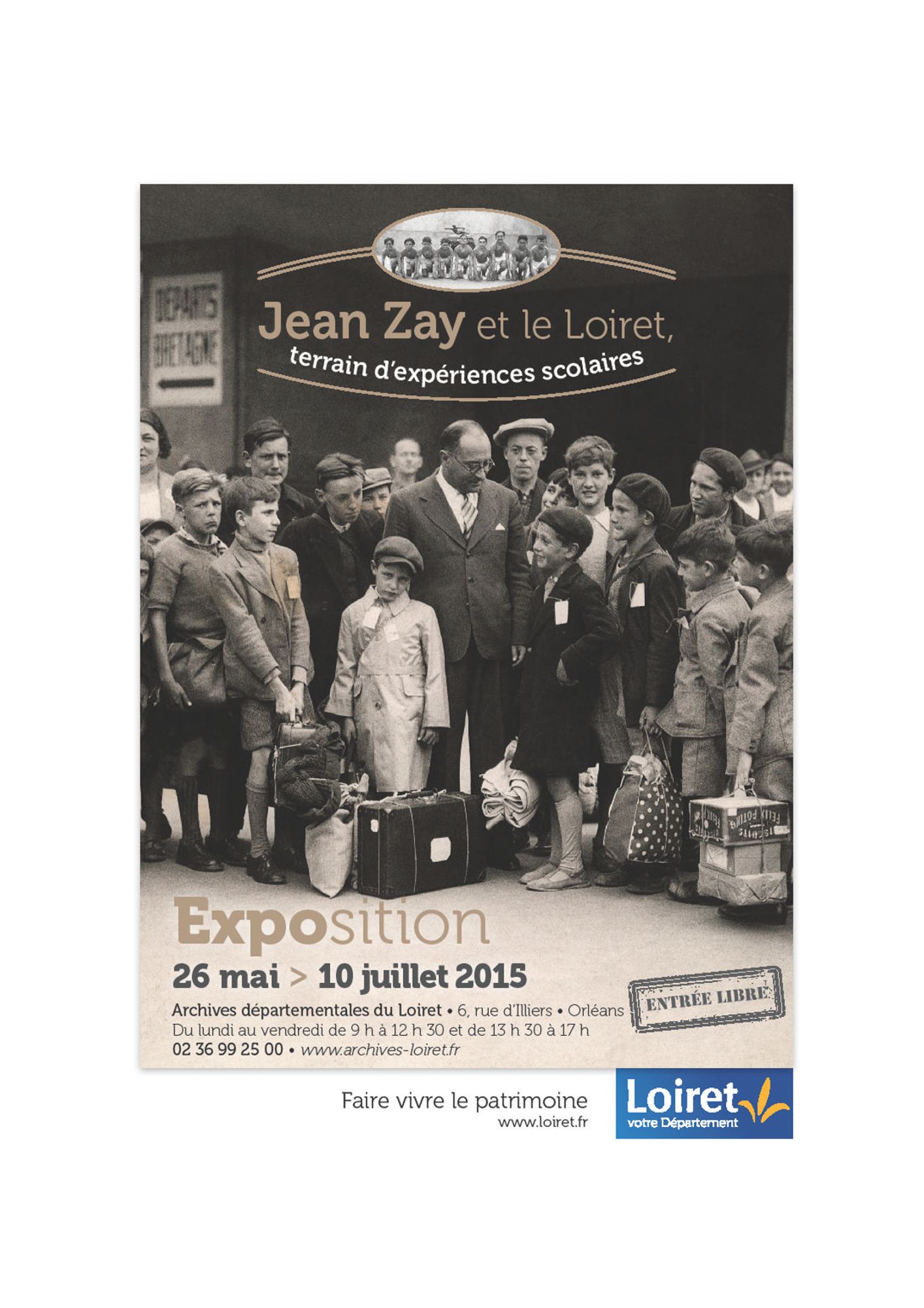 Un hommage national était rendu à Jean Zay lors du transfert de ses cendres au Panthéon le 27 mai 2015. Le Département s’y associe en vous présentant des documents qui témoignent du lien intime qu’entretenait Jean Zay avec le Loiret.