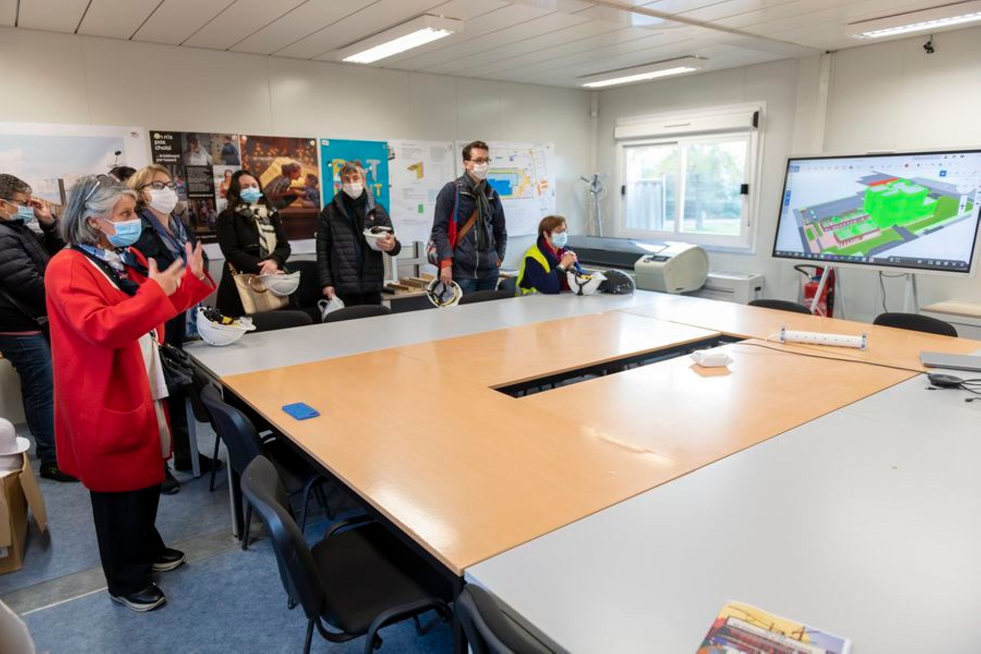 Première visite du chantier pour l’ensemble de l’équipe, conduite par Laurence Bellais Vice-Présidente du Conseil départemental du Loiret, présidente de la "Commission Culture, Attractivité et Tourisme".