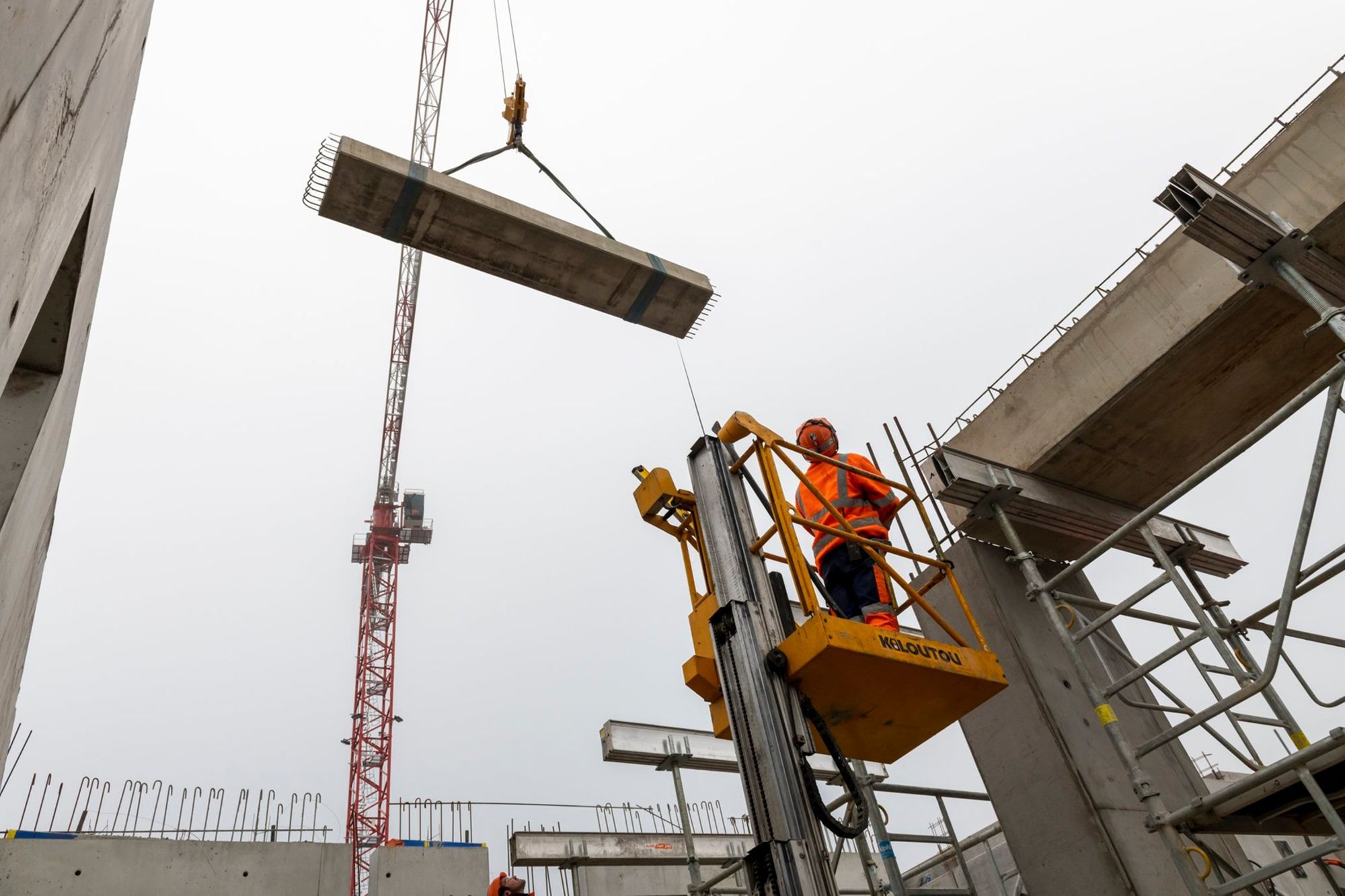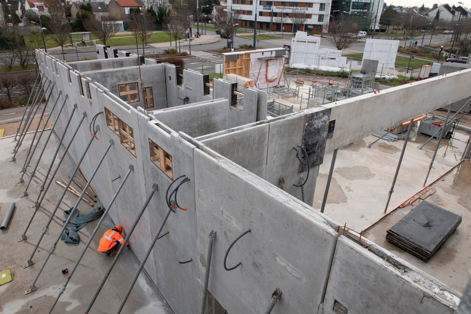 Le premier étage se monte très vite : les espaces d’accueil des publics et les locaux de travail des agents, au rez-de-chaussée comme au premier étage, sont désormais bien visibles.