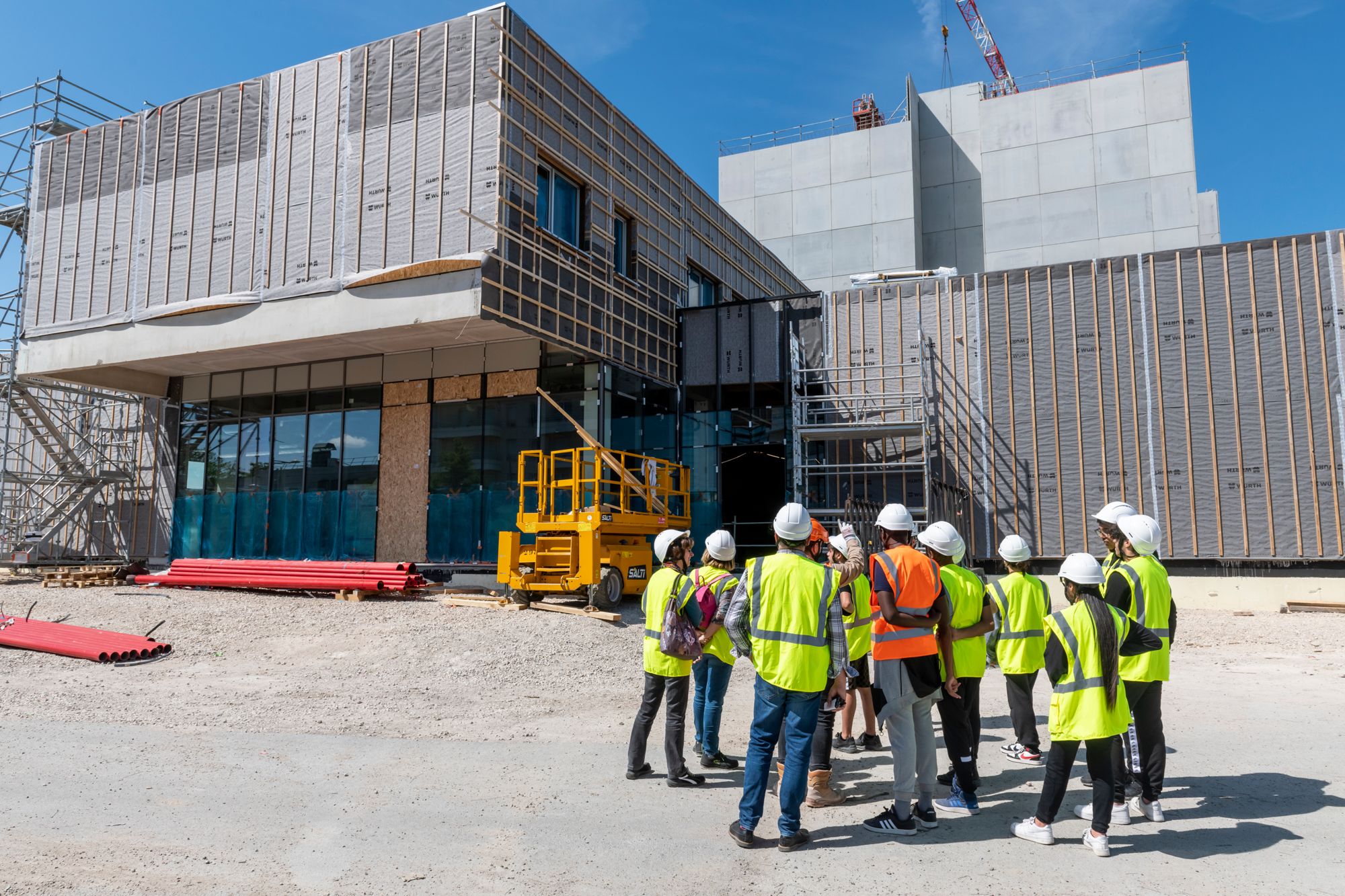 Dans le cadre de l’opération «Une école, un chantier, des métiers » pilotée par la DRAC, nous avons reçu les collégiens de la classe de 3e Prépa Métiers du collège Jean Rostand d’Orléans sur le chantier du futur bâtiment. Au cours de l’année scolaire, ces collégiens se sont déplacés à plusieurs reprises aux Archives (rue d’Illiers) afin d’explorer les différentes missions des Archives et une première visite du chantier a été organisée en décembre 2021, au début des travaux du gros œuvre. Ils ont ensuite travaillé avec l’équipe pédagogique et une architecte sur deux projets en lien avec les archives et le nouveau bâtiment. Cette deuxième visite avait pour but de leur faire découvrir l'univers de la construction et ses différents métiers. Les jeunes, très impliqués, ont pu échanger avec les agents des Archives, mais aussi avec les équipes en charge de la construction du bâtiment. L’opération se poursuivra sur la prochaine année scolaire avec une nouvelle classe de 3e. Les travaux des deux classes seront exposés lors de l’inauguration officielle.
