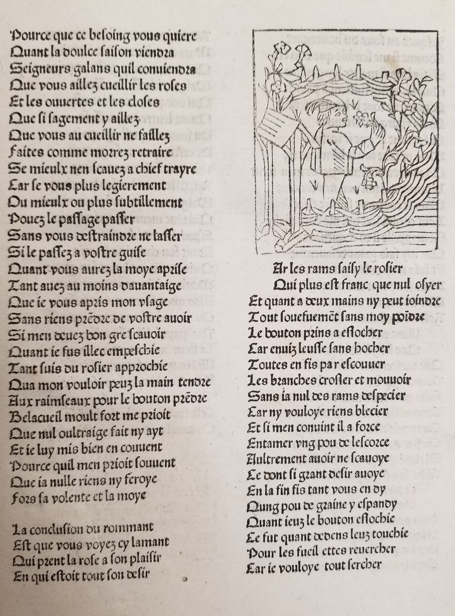 - Le roman de la Rose, Jean de Meung et Guillaume de Lorris. - 1ère éd. - 1481. - 86 gravures sur bois (voir reproductions photographiques : 6 PH 604 à 611, 6 et 10 PH 885 et 6 PH 954 à 1027). - Typographie : lettres bâtardes. - 2 Ex-libris : Albert Natural et baron Alexander Peckover. [microfilm : 1 MI 2360]