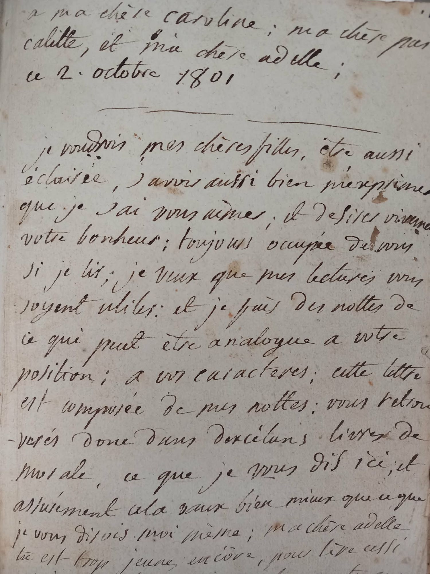 « Conseils à mes filles », manuscrit de la marquise de Vanssay, 1801. Archives départementales du Loiret, 35 J 92.